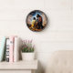 I received this as a birthday gift from my husband to replace a clock that had broken. It was perfect, pictures of my sweet family to see at every hour of the day. The size of the pictures looks nice for the size of the clock and I love looking at it! The only downside is there is no cover for the battery on the back, which makes me nervous having little kids running around the house, but an easy fix with some tape. The printing turned out clear, considering they were all cell phone pictures. Some of them look slightly grainy upon getting close up. But so nice overall!