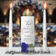 This stunning wedding unity candle set will make a wonderful addition to any wedding ceremony. It features an elegant and romantic design with a single vivid royal blue or cobalt colored rose reflecting in a pool of water. The quote reads "and the two shall become one" in fancy calligraphy word art. There is space for the names of the couple and wedding date with the couple's initials on each of the tapers. Wonderful way to express your love during your wedding ceremony, and a beautiful keepsake for years to come.