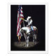 A gorgeous photograph of the cowgirl on a palomino & white Paint Horse holding the American Flag during the National Anthem at the 2014 Snake River Stampede.