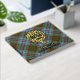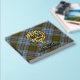 Clan Anderson crest badge surrounded by a strap and buckle over tartan background. Custom front, back and spine text.