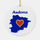 This Andorra ornament features a map of the country with a heart inside, designed with the colors of the national flag of Andorra. Optionally add in your own personalized message!