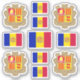 Four Custom-cut vinyl stickers with the coat of arms of Andorra and seven stickers with the Andorran flag in the center