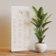 This seating arrangement template can be used to organize your guests alphabetically or by table number. It includes enough room for up to about 120 guests. Make room for more (or less) guests by clicking the "customize" button and decrease or increase the size of the font. In addition to the placement of each guest, personalize this sign with the names of the couple and the wedding date.
