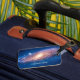 Andromeda Galaxy, labeled, custom-designed luggage tag.