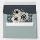 Dusty sage green envelopes feature a deep smoky blue gray liner accented with a spray of ivory anemone flowers and sage green eucalyptus branches. Add your return address details to the back flap in elegant and modern italic and block lettering. Coordinates with our Anemone and Eucalyptus wedding invitation collection.