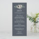 Place these elegant menu cards at each place setting for a beautiful touch to your wedding reception setup. Design features a smoky blue gray background with a spray of watercolor anemone flowers and dusty sage green eucalyptus branches, with chic white lettering in a mix of italic, script and block typefaces.