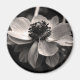 Black and white Floral photography. Photograph of anemone on round magnet. Matching poster, greeting card, postcard, postage and more...