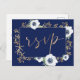 Anemone Flower Navy Blue Wedding Meal Choice RSVP Postcard
