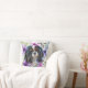 Floral dog art pillow with 'Anemone' tricolor cavalier king charles spaniel design in purple, pink and green colors.