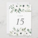 Help your guests find their way with these table number cards. Design features a bouquet of watercolor greenery, eucalyptus, sage and anemones hand-drawn specially for the «Evergreen Garden» Wedding Invitation Collection. View the collection link on this page to see all of the matching items in this beautiful design