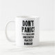 This delightful white mug features the phrase 'Don't Panic! I'm A Professional Anesthesia Practice Manager.' It's perfect for those in healthcare management, making it an ideal office mug for daily use or as a thoughtful gift for birthdays and promotions.