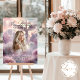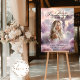Honor your loved one with this beautiful funeral welcome sign. Featuring an angel by a cross amidst heavenly clouds and pink flowers, perfect for a serene and heartfelt memorial tribute.