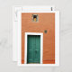 Our postcard features a photograph of the front door of a little house in Culross, Fife, Scotland. The walls are painted burnt orange and the door is green. The plaque on the wall dates the building of the house to 1676. We've added Raphael's famous cherub angel painting to the tiny window.