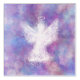 Pretty white angel with a gorgeous purple bokeh background.