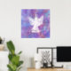 Pretty white angel with a gorgeous purple bokeh background.