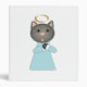 An adorable gray cat dressed as an angel, including halo on a binder