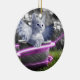 Lightweight, smooth, pure white ornament with nice sheen. Perfect size to be seen from across the room ... and to attract closer inspection! Price was great for ordering enough for the whole family! Clear, bold black design just as requested. Matches the order exactly. Just so nice!