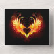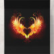 Angel fire heart with flaming wings on black background.