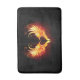 Angel fire heart with flaming wings on black background.