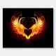 Angel fire heart with flaming wings on black background.