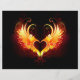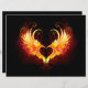 Angel fire heart with flaming wings on black background.