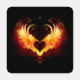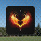 Angel fire heart with flaming wings on black background.