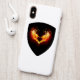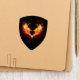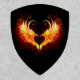 Angel fire heart with flaming wings on black background.