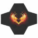 Angel fire heart with flaming wings on black background.