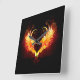 Angel fire heart with flaming wings on black background.
