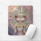 "Angel in Lilac" is the title - a delicately beautiful angelic fairy creature with liquid doe-like eyes. She wears a lilac gown with golden dragon motif, with her feathery wings & butterflies ascending to the opening in the heavens behind her. This is my own original acrylic painting.