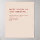 Angel of God, my guardian dear, to whom God's love commits me here, ever this day be at my side, to light and guard, to rule and guide. Amen.