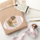 Angel on pink flowered background. oval sticker