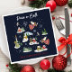 A cheerful Folk art Christmas illustration featuring a Christmas angel of peace on earth with a white dove. She flies above a winter mountain village with coloured houses, Christmas trees forest and animals running around in the snow, snowflakes swirl down. Perfect to decorate your Christmas table for your loved ones this holiday Christmas season. Hand painted original artwork by Caroline Bonne Müller