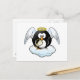 This is a picture of a cartoon angel penguin. The penguin is holding a harp, has angel wings and a halo.