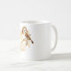 A coffee mug with a sweet image of an angel playing the violin with flowers in her hair. This vintage image looks weathered and faded from the hands of time, and has an worn yellowish tone.