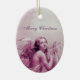 ANGEL PLAYING LYRA OVER THE CLOUDS pink Ceramic Ornament