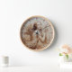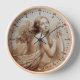 ANGEL PLAYING LYRA OVER THE CLOUDS Sepia Brown Wall Clock