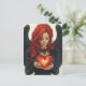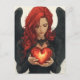 A cute angel with red hair dressed in black gothic holds a glowing heart in her hands