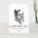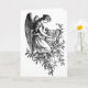 vintage drawing of an angel playing the harp surrounded by leaves. beautiful black and white illustration of angelic figure kneeling on a leafy ground and a musical instrument.