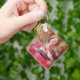 The key chain is made of metal and really sturdy. The flower design is really cheerful. The logo and colors are clear and crisp!