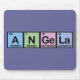 The name Angela spelled out using elements from the periodic table. * Note "element A" is the fictional element "Angelium", numbered 165. You can totally customize this gift! Move the design around, change the color or style, add your own text or images -- make it your own!