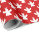 Cute white angels with halos pattern on a red background for your holiday gift wrapping needs.