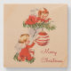 Adorable little Christmas angels painting an ornament for the Christmas tree on this holiday coaster.