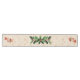 Angels Decorating the Christmas Tree Table Runner with Holly, Berries, and gold snowflake background.