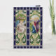Send Easter Blessings to family and friends with this handsome religious card simulating stained glass in rich dark blues, bright spring greens, soft warm yellows, and silver grays. Done in the Liberty Style, the British version of Art Nouveau, two long rectangular panels with figured scenes arranged side by side represent two seated angels at the empty tomb on the left and the Three Marys come to anoint the body of Jesus on the right in oval frames surrounded with stylized greenery. + Inside: The relevant Gospel passage, Mark 24:1-6, provides context for the imagery. + Image Credit (RT 01): Antique images from an embossed postcard in chromolithography entitled A Peaceful Easter, Easter Hymns Series, No. 714, originally published by Raphael Tuck & Sons, London, England, and printed in Saxony, Germany, 1912, from the designer’s private collection. Quote (Mark 24:1-6): The Open English Bible (OEB), which is in the public domain under a Creative Commons Zero (CC0) license.