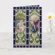 Wish family and friends a "Happy Easter" with this handsome religious card simulating stained glass in rich dark blues, bright spring greens, soft warm yellows, and silver grays. Done in the Liberty Style, the British version of Art Nouveau, two long rectangular panels with figured scenes arranged side by side represent two seated angels at the empty tomb on the left and the Three Marys come to anoint the body of Jesus on the right in oval frames surrounded with stylized greenery. + Inside: A large panel with stylized Easter lilies. Image Credit (RT 01): Antique images from an embossed postcard in chromolithography entitled A Peaceful Easter, Easter Hymns Series, No. 714, originally published by Raphael Tuck & Sons, London, England, and printed in Saxony, Germany, 1912, from the designer’s private collection.