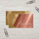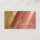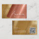 A warm color palette of copper and gold, with subtle lighting effects to simulate metal, is the background for your name in a modern, signature font. Add your name and occupation on the front, your personal contact information and QR code on the reverse. This design works well for any professional: event coordinators, organizers, financial consultants, attorneys, estheticians, etc; anyone who wants a card with eye-catching elegance. Shown here in standard business card size.