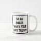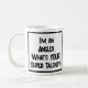 Funny slogan on a Coffee mug that says "I'm an Angler. what's YOUR super talent?". Coffee Mug for an Angler. Black and white bold text.