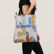 Bolsa with art made in watercolor with geometric shapes in the base colors, orange and blue, painted in an intuitive and coordinated manner to leave harmonic spaces between the formats, making the work unique and pleasant to the eyes.