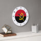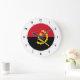 Design with flag of the Republic of Angola; red and black flag with a yellow symbol of crossed machete and cog wheel with a gold star